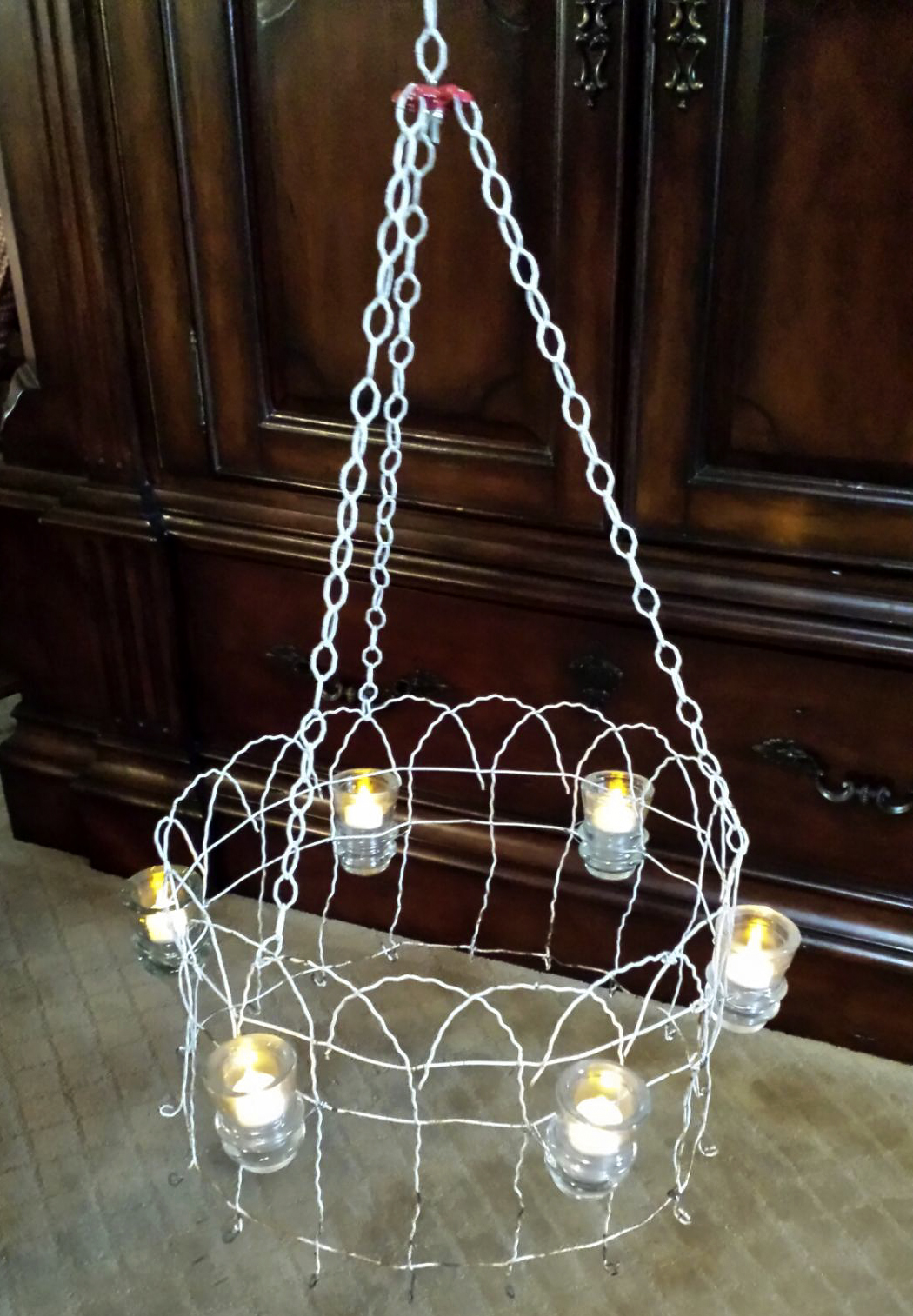 Up-cycled wire fencing and insulators to garden light. http://www.lifeatthecottage.com