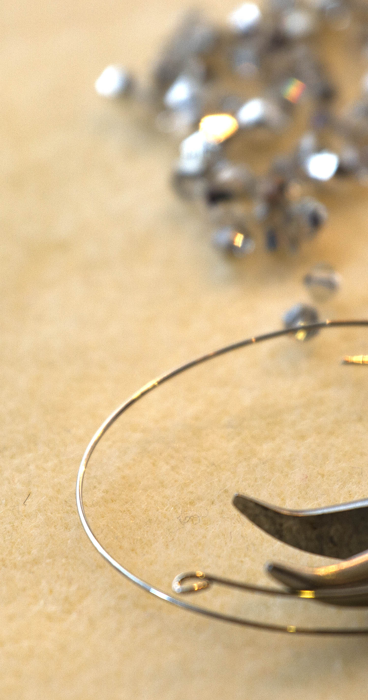 I found the supplies for these bracelets at Michaels. First cut the memory wire to a length that overlaps on your wrist about 1 1/2 inches.