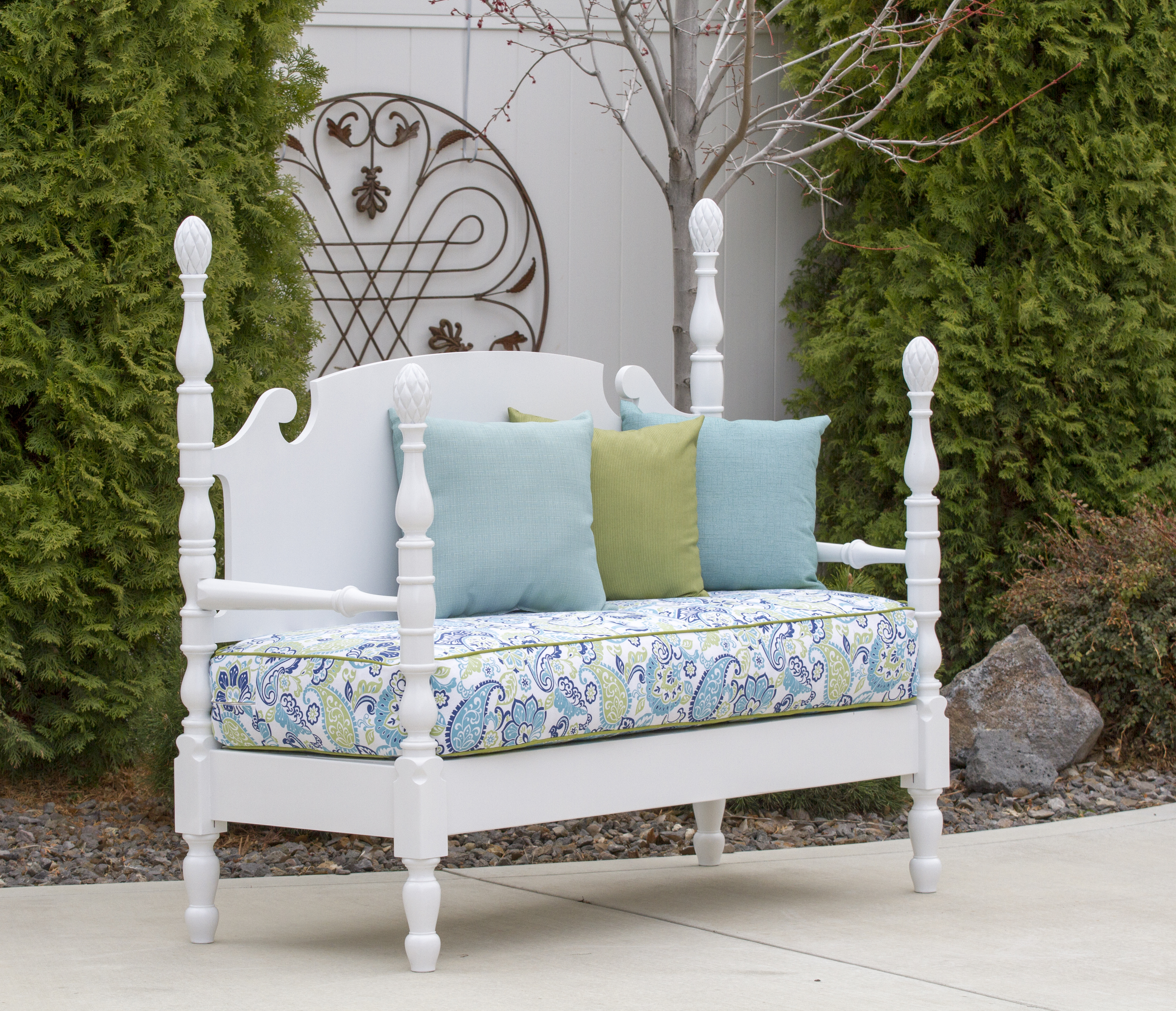 An old bed frame re-purposed into a bench http://www.lifeatthecottage.com