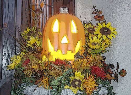Then after Halloween, simply turn the pumpkin’s face to the corners and you are ready for Thanksgiving.